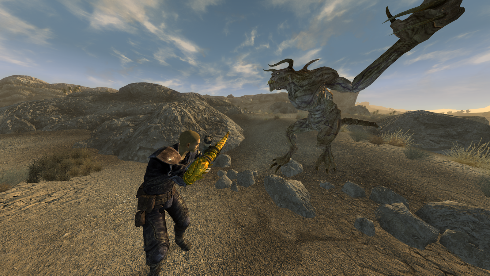 A spinoff of the main Fallout series by Bethesda developed by Obsidian Entertainment. Set in a Post-Nuclear Apocalypse America, the player takes control of the “Courier” who is ambushed, mugged of a package they were meant to deliver, shot and left for dead in a cemetery. After miraculously surviving the ordeal, the Courier goes on a journey to find out why.